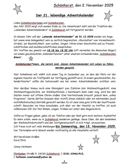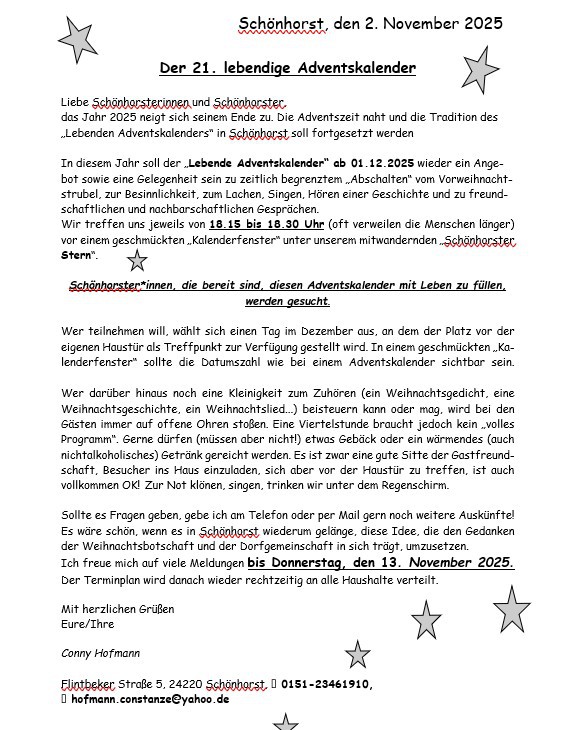 Wo? Im Saal des Gemeindezentrums in der Dorfstraße in Flintbek.